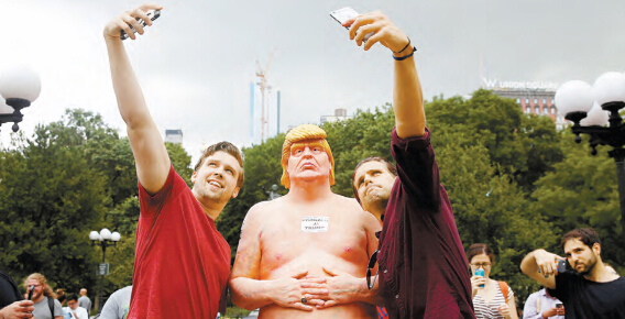 在紐約,近日突然出現了特朗普的裸像,不少民眾都爭相與他合影。路透社