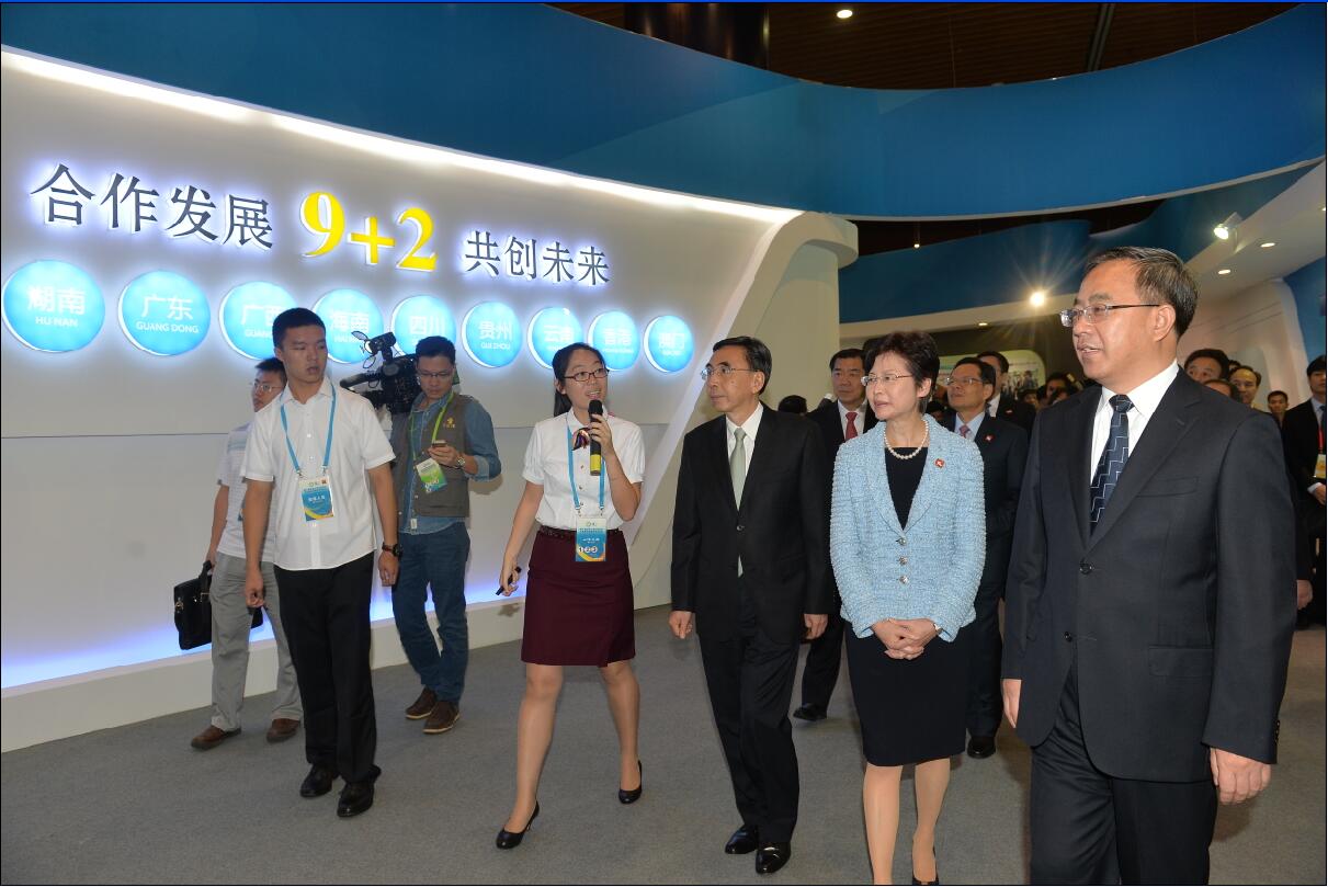 中共中央政治局委员、广东省委书记胡春华、省长朱小丹,特区政府政务司司长林郑月娥等官员视察泛珠成就展。