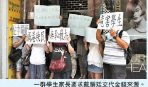 昨到場欲向戴耀廷抗議的學生家長代表劉先生表示,事前得知戴耀廷有機會在活動中出現,所以與一眾學生家長到場抗議。劉先生又指,戴耀廷在背後策劃對談會,並指責他為人師表,教壞學生作出「佔中」等行動,要求他向一眾學生家長交代。另外,劉先生續指戴耀廷分別收取了50萬及100萬,要求他交代帳目及金錢來源。