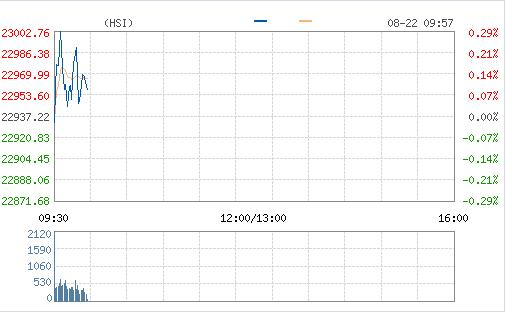 上周五美股收跌,市場關注本周五美聯儲主席耶倫將在環球央行年會上發言。恒生指數今早高開4.31點,漲0.02%,報22941.53點;國企指數高開3.3點,漲0.03%,報9609.47點;紅籌指數高開4.74點,漲0.12%,報3970.21點。大市成交額13.78億元。