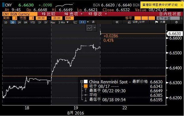 今日人民幣兌美元中間價報6.6652元,為6月27日以來最大降幅,略低于上周五收盤價。上周五中間價報6.6211元,16:30收盤報6.6500,23:30收盤報6.6546。