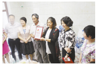 在朱婷家中,河南省婦聯向朱婷父母現場頒發了“河南省最美家庭”獎牌并合影留念。