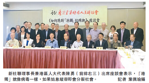 【香港商報网訊】記者葉佩瑜報道:「港獨」問題近期引起社會關注,新社聯理事長兼港區人大代表陳勇昨日出席相關座談會表示,「港獨」就像病毒一樣,如果姑息縱容即會分裂社會,令香港由穩定繁榮的地方變成原始森林。他又強調,按《基本法》第1條已表明香港是中國的一部分,為了避免下一代被「港獨」荼毒,港府應嚴正打擊。
