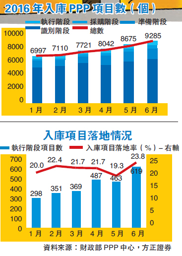 另據財政部PPP中心統計,截至2016年6月30日,財政部兩批示範項目232個,總投資額8025.4億元,其中執行階段項目105個,總投資額3078億元,落地率達48.4%。