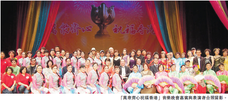 【香港商報網訊】記者洪紫瑩報道︰由清蘭和諧之音主辦、南區工商業聯合會協辦的「萬眾齊心祝福香港」音樂晚會,日前於荃灣大會堂舉行,邀請得逾二十組表演單位表演,為在場近千名觀眾帶來歌唱、舞蹈等精采演出,向社會發放正能量。