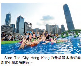 【香港商報網訊】記者何加祺報道:再度來港的「Slide The City Hong Kong」由今日起一連6日在中環海濱舉行,今年更將重點項目「城市滑水梯」更推出改良版,比去年高度、斜度增加30%,亦進一步提升滑水道的水量,以增加滑水速度和刺激感。大會指,今年的門票以時段劃分,各時段設800人至1200人的人數上限,可更有效分流人流,又預計今年入場人次可達1.6萬人次。