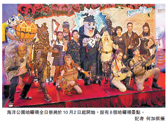 海洋公園昨日宣布,今年的「哈囉喂全日祭」將於10月2日至10月31日期間指定17個日子舉行,推出8個哈囉喂景點共10個全新體驗,當中包括6間鬼屋及今年新增的2條猛鬼巷「陰陽路」及「屍家路」。