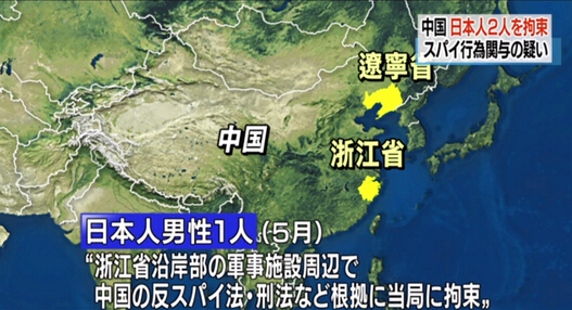 中國駐日本大使館發言人何振良去年9月證實,“中國相關部門會依照法律,對4名日本間諜進行調查”,其中兩人被逮捕、一人被拘留、一人被監視居住。4名日本間諜分別是在遼寧、浙江、北京、上海等地被捕。
