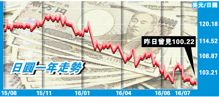 日圓匯價急升令日本出口企業叫苦,當地第2季GDP增長幾乎停滯,7月出口錄得金融海嘯以來最大跌幅,反映出匯價走強對日本經濟的衝擊。日本央行已出多招遏抑日圓,早前當地央行已買了市場上三分一的國債,又將利率減至負數,但因美息在加息周期中續回落,兩者息差未見大幅拉闊。