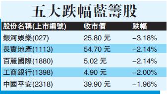 重磅股騰訊(700)下試200元關,收市跌1.2%報201元;港交所(388)190元關得而復失,收市跌0.3%報189.1元。招銀國際策略師蘇沛豐認為,騰訊增長強勁,不受周期性影響,但是受到大市影響,回落至200元邊。他認為,待股價回落至190元便可趁低吸納。長線投資者亦可繼續持有,因為騰訊的微信朋友圈將成為其增長推動力。