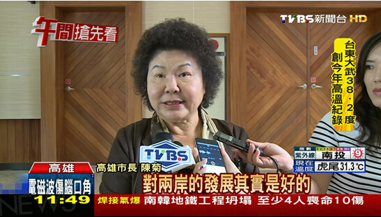 6月1日,臺媒報道陳菊向大陸喊話,希望能到大陸城市邀請來參加論壇