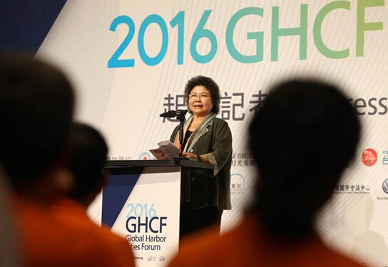 陳菊在“2016全球港灣城市論壇”宣傳記者會上