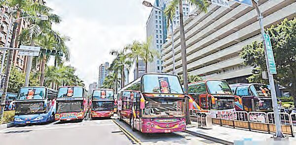 【香港商报网讯】陆客团火烧车事件后,台游览车业者不满遭污名化为「拼装车」,新北市游览车驾驶员职业工会昨日织约400名游览车业者及250辆游览车,再度包围交通部抗议并车龄限制压迫业者生存,图利特定财团,要求交通部给他们一条生路,现场一度爆发冲突。后路政司司长林继国与工会理事长李式嘉进行沟通,针对工会诉求双方达共识,陈情退场。不过,观光业者已决定9月12日走上凯道,抗议当局无视观光颓势。