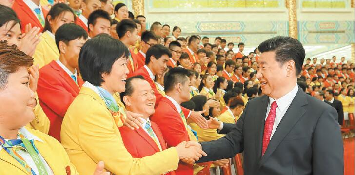 習近平強調,我們講道路自信、理論自信、制度自信、文化自信。我們不以勝負論英雄,同時英雄就要敢于爭先、敢于爭第一。在奧運會這樣高水平的競爭場合,爭第一、拿金牌獎牌很不容易,拿到金牌獎牌的,值得尊敬和表揚。同時,只要勇于戰勝自我、超越自我,即使沒有拿到金牌獎牌,同樣值得尊敬和表揚。所以我要說,這次拿了金牌獎牌的隊伍和運動員,都是好樣的。這次沒拿到金牌獎牌,但在比賽中做了最好的自己的隊伍和運動員,也都是好樣的。中國女排不畏強手、英勇頑強,打出了風格、打出了水平,時隔12年再奪奧運金牌,充分展現了女排精神,全國人民都很振奮。我國體育健兒在里約奧運會上的表現,展示了強大正能量,展示了“人生能有幾回搏”的奮斗精神。實現“兩個一百年”奮斗目標、實現中華民族偉大復興的中國夢,就需要這樣的精神。要在全社會廣泛宣傳我國體育健兒在奧運會賽場上展現的拼搏精神,使之化為全黨全國各族人民團結奮斗的強大精神力量。