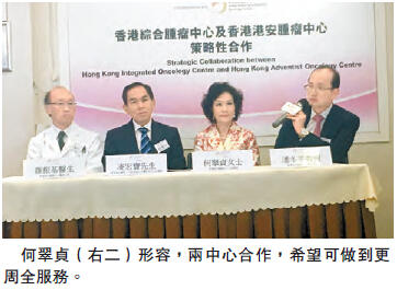 【香港商報網訊】記者葉佩瑜報道:癌癥是香港的頭號殺手,為了更好作出應對,香港綜合腫瘤中心昨宣布與香港港安腫瘤中心成為策略性合作機構,以將整全癌癥治療概念引進香港,并回應癌癥患者對住院治療及放射治療的需求,由預防、檢查、診斷至個人化的治療方案,均有專人跟進。香港綜合腫瘤中心行政總裁何翠貞形容,這是本地醫療界一次破天荒的合作,希望可做到更周全。