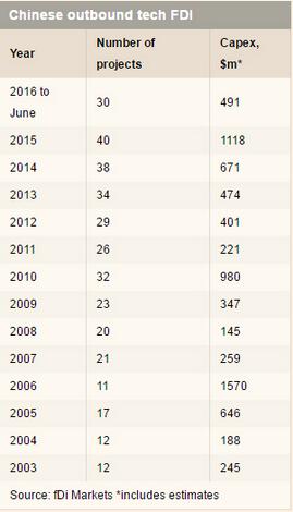 英國《金融時報》旗下跨境投資追蹤機構fDi Markets的數據顯示,2005年到2015年,中國科技企業在軟件和IT以及消費電子產品領域的海外投資僅有291宗。