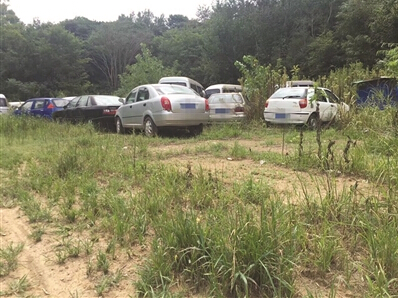 南京江寧谷里的一處小山,根據附近的村民反映,在小山里面停放著成百上千輛破舊的汽車。揚子晚報記者在當地村民的帶領下來到了現場查看,在一處紅瓦廠院后面的荒地和樹林內,雜七雜八地停放著近200輛各色汽車,樹林背后的另一處山坳,同樣有兩處密密麻麻的汽車停放點,粗略估計這里停放的汽車也接近200輛。記者發現,這里停放的汽車都已經破敗不堪,周邊的荒草都有齊腰深。盡管草叢里面是一些非常破舊,很久沒開的汽車,但這些車的牌照都是新的,有一輛是蘇A L3N××,一輛是蘇A L8N××,也就是說這些車的牌照都是在同一個號段同一個時期上牌的。