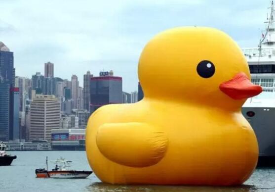 2013年,著名的“大黃鴨”來到香港的維多利亞港的海面上,把一個最不具政治特征的“浴盆玩具”放大成紀念性建築的體量,反而使得維港的摩天大樓相形見絀。這一現象可以看成是以公共藝術去實現“無邊界”的後現代文化的例子。