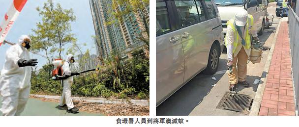 感染寨卡病毒外籍女患者(38歲),在中環國金中心工作,回港后曾到西貢及灣仔。食環署昨晨派員到女患者中環工作的地方附近一帶的馬路,向花圃和坑渠噴蚊油。另一批工人則到女患者家住的將軍澳日出康城二期一帶噴殺蟲劑滅蚊,又清理樹枝和雜草。