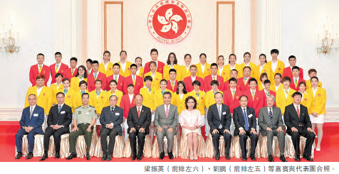 行政長官梁振英、政務司司長林鄭月娥、代表團團長國家體育總局局長劉鵬、中國香港體育協會暨奧林匹克委員會會長霍震霆與內地奧運精英出席宴會。