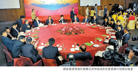 港府於會展筵開19席,款待里約奧運內地精英代表團,內地方面,由國家體育總局局長劉鵬及中聯辦副主任楊健率領一眾精英運動員出席。香港方面,除了林鄭月娥、勞工及福利局局長張建宗、民政事務局局長劉江華、商務及經濟發展局局長蘇錦梁、警務處處長盧偉聰等官方代表。