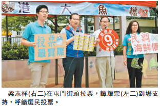 当日,梁志祥联同民建联前主席谭耀宗在「港大鱼档」上演街头短剧,他们均指出,民调就像「海鲜价」,未能反映真实选情。而梁志祥紮根新界西,长期服务新界西,明码实价,是最可靠亦是最值得市民支持。