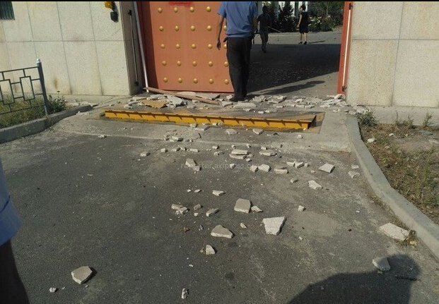现场散落着建筑物的碎片。