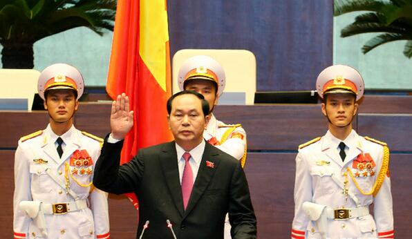 資料圖:7月25日,越南國家主席陳大光在首都河內宣誓就職