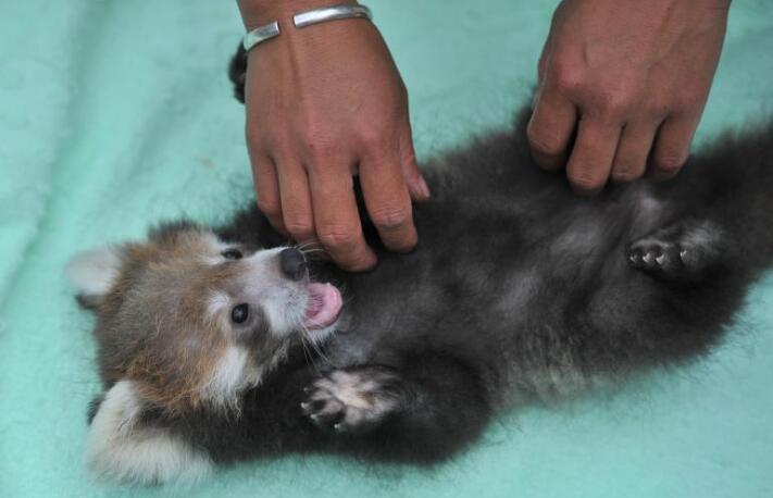 近日,雲南野生動物園裏的小熊貓家族又多了一個新成員“蟲蟲”。這是動物園首次成功繁殖的小熊貓。目前,在飼養員的呵護下,出生兩個多月的“蟲蟲”正在健康成長。