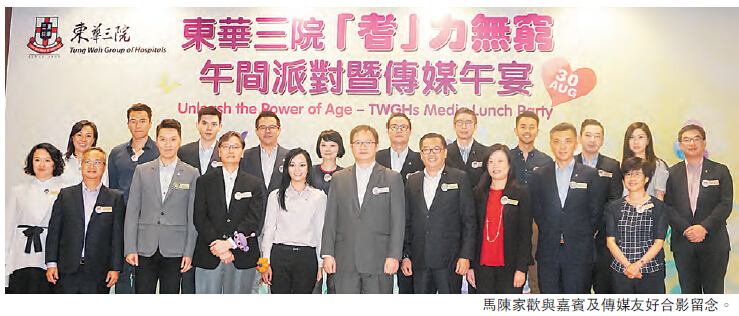 【香港商報網訊】記者于寧寧報道:東華三院耆力無窮無間派對暨傳媒午宴昨日在黃竹坑新落成的安老院舍--東華三院賽馬會松朗安老綜合中心舉行。東華三院主席馬陳家歡、政府新聞處處長黃智祖等與傳媒友好聚首一堂,其樂融融。馬陳家歡感謝各大傳媒多年來對東華三院的支持,讓更多有需要的市民受惠,并介紹了8月31日東華三院賣旗日活動。