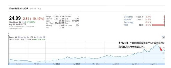 也是在上周三,宜人貸ADR收跌約22%,次日開盤又猛跌10%,雖然次日以微漲0.04%收官,但上周一到周四四個交易日跌幅已超過33%。