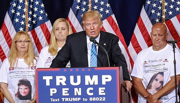 演講中,他再次強調對非法移民的“零容忍”立場,稱自己當選總統后將執行一系列措施,包括驅逐大約200萬名有犯罪記錄的非法移民,加強邊境管控,成立“驅逐特遣隊”,以及廢除奧巴馬旨在保護部分非法移民的總統行政令。