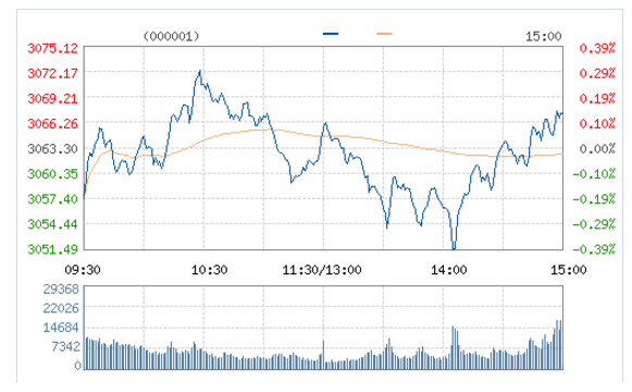 今日A股市場低開后,股指全天窄幅震蕩,多空劇烈博弈。地產、金融、煤炭等權重股有護盤意圖明顯。格力電器今日復牌大買單封漲停。截至收盤,滬指漲0.13%報3067點,深成指跌0.27%報10640點。