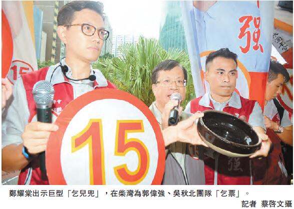 郭伟强昨日联同其名单第二位的工联会理事长吴秋北,及郑耀棠在港岛区四出拉票。他们先到柴湾青年广场外的天桥举行造势大会,又到筲箕湾继续拉票。而期间其他党派的支持者更不时走过来骚扰,又高举其候选人的横额,阻碍造势活动。棠哥冀新一届议会复正常