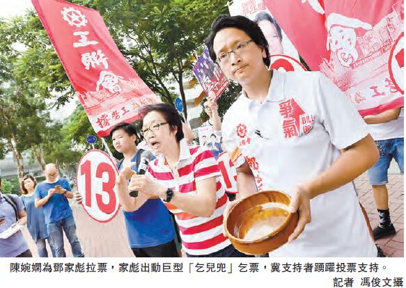 至於邓家彪,昨日除了整日游走区内作最后冲刺拉票外,更获工联会荣誉会长兼「超级区议员」陈婉娴与会长林淑仪一同「撑场」;一批亚洲电视的旧员工及为数20多名澳门青年刻意到港为邓拉票。