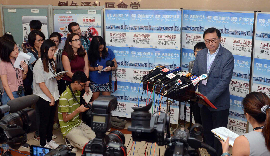 9月4日,香港选举管理委员会主席冯骅到一票站巡视后与媒体会面,介绍最新投票情况。