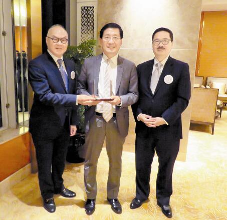 創會主席周振基教授,主席李三元,副主席許慶得等,偕與會同仁熱烈歡迎林天福行政總裁。李三元首先向林天福總裁介紹了中華企業家協會的架構、目標和同仁為香港貢獻力量的願望,接着向同仁介紹林天福總裁簡歷。