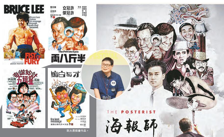 昏暗雜亂的倉庫里,翻出一卷卷海報,秀出七八十年代香港電影的黃金經典:《天才與白癡》、《摩登保鑣》、《賣身契》……海報右下角,印著的是原創者的簽名:阮大勇。這是紀錄片《海報師:阮大勇的插畫藝術》的頭一幕。該紀實影片由許冠文兒子許思維執導,透過幾個章節的日常訪談,重新喚起人們對於昔日的記憶:香港本地電影業有過這麼一位沉默的幕后功臣,出身廣告插畫,1975年至1992年間,曾畫下約200幅電影海報;不僅有許氏兄弟一系列破紀錄賣座作,李小龍《唐山大兄》、《精武門》、《猛龍過江》及《死亡游戲》的海外版海報,且幾乎整個80年代新藝城影業的手繪電影海報,都出自他的手。可以說,40多年來,香港電影經歷了輝煌的時期,也經歷了諸多的風雨,人們曾經喜歡的電影情節或許會漸漸被遺忘,然而,這批自出阮大師畫筆下的手繪海報,卻為香港本土電影留下了痕跡,成為香港獨特的文化,讓人們得以永遠回味。