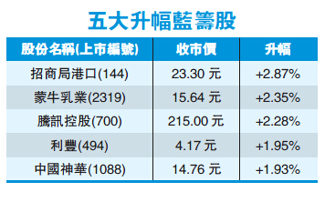 航運相關股昨日顯著發力,招商局港口(144) 升了2.8%,成為表現最佳藍籌。中外運航運(368)更升6.2%、中海集運(2866)升6.1%、中國遠洋(1919)亦升5.1%。