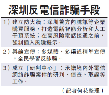 大公網深圳9月6日訊 (記者 何花)電信網絡詐騙層出不窮,內地警方不斷加大警力打擊仍有大批詐騙受害者出現。面對日益復雜的詐騙手段,深圳警方聯合多個政府部門,以及銀行、通訊行業企業等相關機構共同創立了一種獨特的反詐騙新模式。深圳成立了“深圳市反電信網絡詐騙中心”,利用大數據分析、建立防火墻等高新科技輔助手段,明顯收到打擊詐騙犯罪效果。連續11年以來,深圳全市電信網絡詐騙案發數和立案數近年來首次下降,今年立電信詐騙案件14582宗,同比降14.2%。