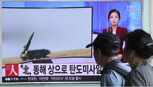 9月5日,韓國電視上報道朝鮮試射導彈畫面。(圖片來自美媒)