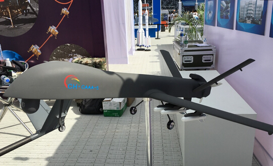展會上展出的彩虹-5無人機模型。