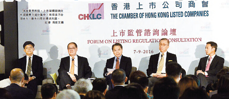 昨日,香港上市公司商會舉辦之「上市監管諮詢論壇」舉行,主席梁伯韜強調對港交所和證監會沒有代表出席論壇感到遺憾和失望。與會各方幾乎一面倒大力炮轟上市架構諮詢,成功連任立法會金融服務界議員的張華峰稱,上市架構諮詢有很多不合理地方,直斥上市架構改革提出的建議,將會造成權力過度集中。