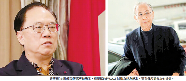 对许仕仁因贪污罪成身陷囚狱,曾荫权说:「我依家只有每日每日都为佢祈祷,我觉得佢都系我终身一个好好?朋友。」赞董建华为香港做了很多好事