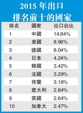 据国际货币基金组织(IMF)统计,2015年中国出口在全球市场中的占比已升至14.6%,为IMF自1980年有这一统计数据以来的最高比例,较2014年的12.9%也大幅上升。