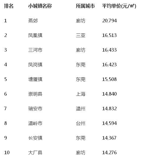 在燕郊之后,廊坊還有3個小城鎮入圍,其中三河市以16433元/平方米的價格高居第3,大廠以14276元/平方米位居第10,香河位居第19,固安位居第24。