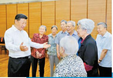 隨后,習近平同教師學生代表座談。據悉,八一學校幾位退休老教師如今已是古稀之年,他們高興地見到了當年教過的學生習近平。師生見面分外激動。習近平同陳仲韓、陳秋影等幾位老師一一握手,愉快回憶往事,聊起其他老師、同學的近况。習近平說,看到各位老師精神這麼好,我心里特別高興。當年老師對我們要求十分嚴厲,現在回想起來,終生受益。一位老師對總書記說:「您給人民帶來了幸福。」習近平答道:「是老師培養了我們。」習近平祝各位老師健康長壽。