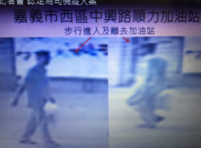 視頻紀錄下蘇明成到加油站購買汽油。中央社
