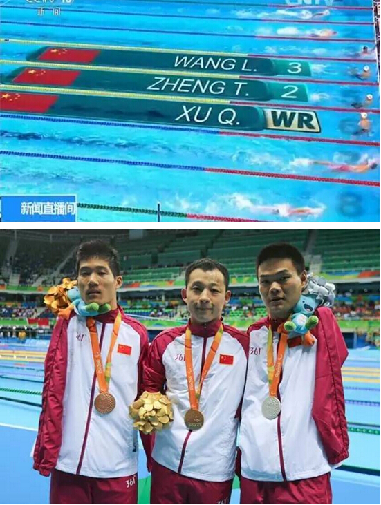 殘奧會游泳比賽一共進行16項決賽,在目前已經結束的比賽中,中國選手披金摘銀,尤其是男子項目,不僅有多位選手包攬冠亞軍,還打破了多個項目的世界紀錄。