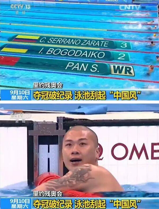 男子50米自由泳S7級比賽中上演了趕超大戲,位于第7泳道的中國選手潘世云與第六道的烏克蘭選手競爭異常激烈,潘世云在前半程一直落后對手,后半程他全力沖刺,最終以27秒35,同樣打破世界紀錄的成績奪冠,繼四年前的倫敦殘奧會之后,潘世云再次在殘奧會上實現了自己的金色夢想。